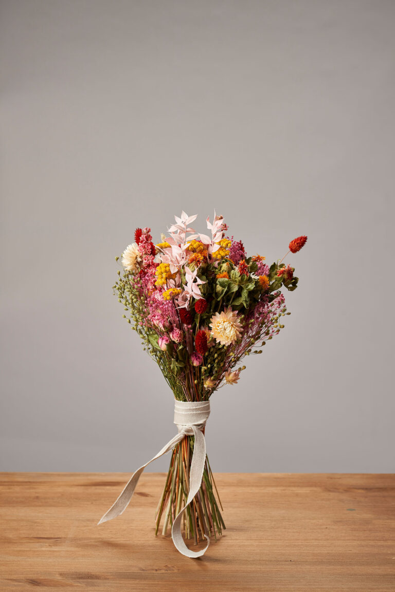 Ramo campestre y alegre y fresco. Lleva un mix de flores preservadas como rosas, ruscus, brooms y otras muchas para alegrar ese rincón que más deseas.